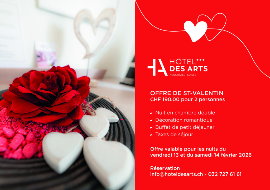 Par e-mail à info@hoteldesarts.ch ou par téléphone au +41 (0) 32 727 61 61.